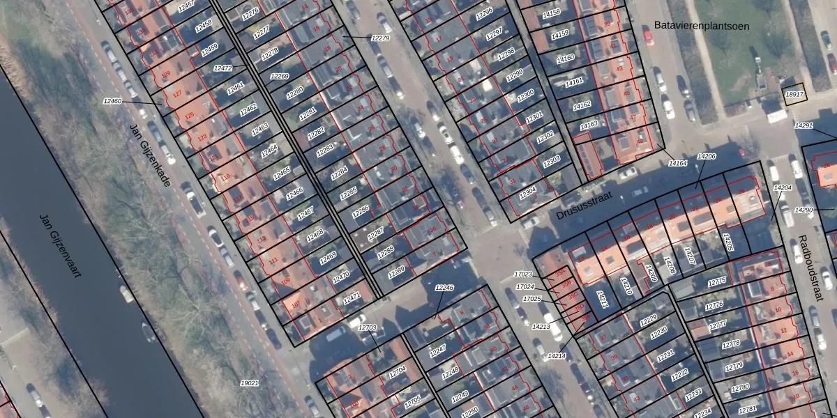 Gebruik de zoekbalk of klik op een perceel voor informatie over de adressen binnen dit perceel.