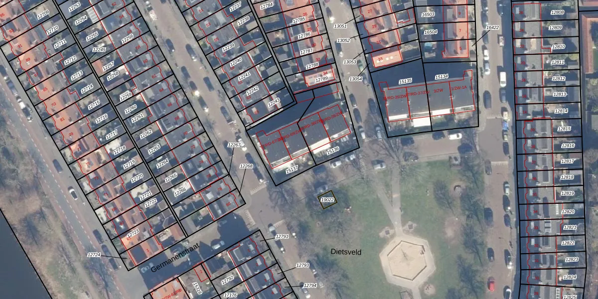 Het perceel waarop Caninefatenstraat 69-ZW staat heeft een oppervlakte van 388 m². Dit is een groot perceel. De perceeloppervlakte wordt geregistreerd door het Kadaster. Gedetailleerde informatie over de maten van dit perceel kunt u vinden in het rapport Kadastrale kaart met maatvoering van Caninefatenstraat 69-ZW.