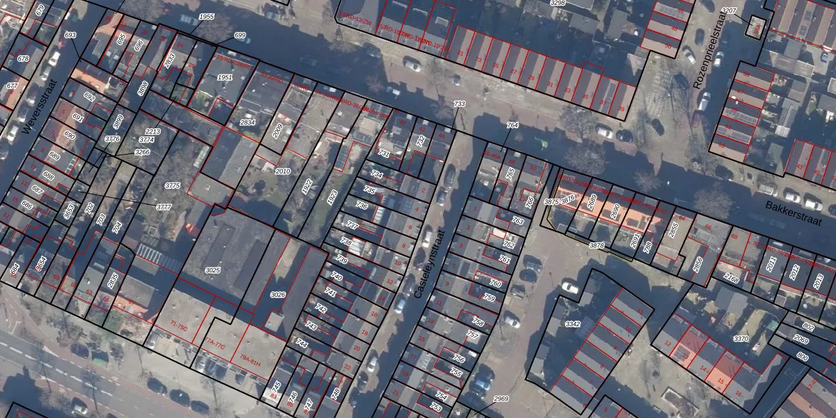 Gebruik de zoekbalk of klik op een perceel voor informatie over de adressen binnen dit perceel.