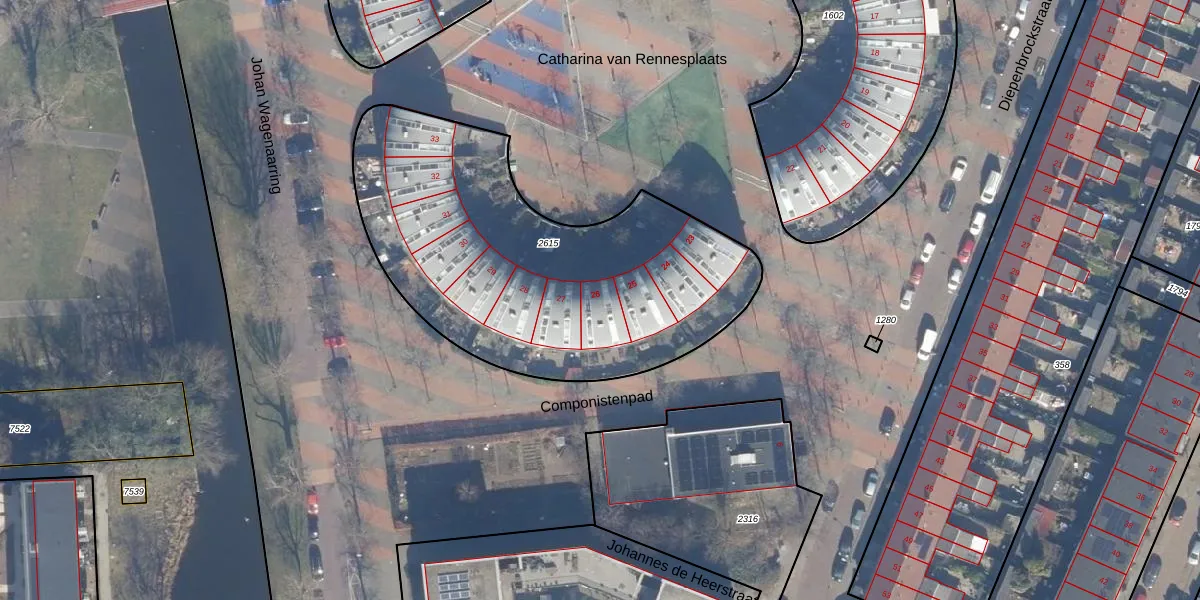 Het perceel waarop Catharina van Rennesplaats 26 staat heeft een oppervlakte van 1838 m². Dit is een zeer groot perceel. De perceeloppervlakte wordt geregistreerd door het Kadaster. Gedetailleerde informatie over de maten van dit perceel kunt u vinden in het rapport Kadastrale kaart met maatvoering van Catharina van Rennesplaats 26.