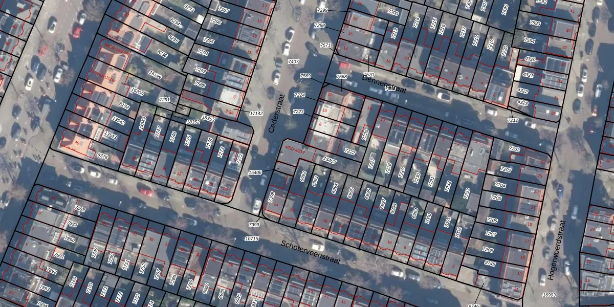 Cederstraat 4-RD is gelegen op kadastraal perceel STN01B15407. Deze kadastrale aanduiding is uniek en wordt gebruikt door het Kadaster om eigendomsrechten en andere zakelijke rechten vast te leggen. Het perceel maakt onderdeel uit van de kadastrale gemeente Schoten.