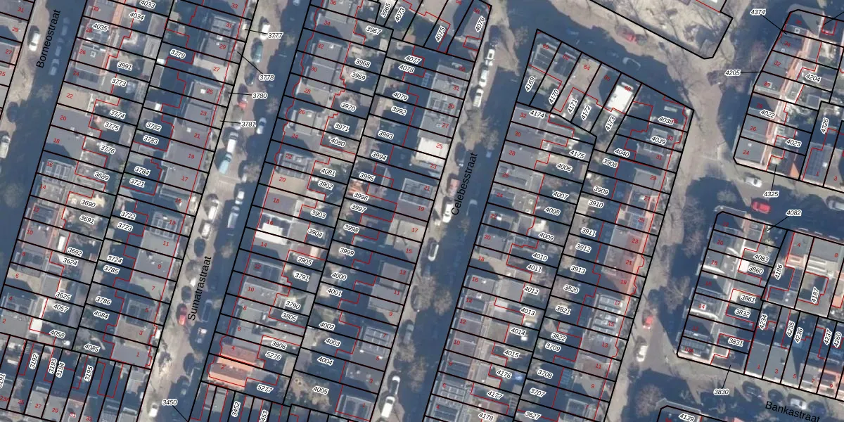 Het perceel waarop Celebesstraat 19 staat heeft een oppervlakte van 108 m². Dit is een middelgroot perceel. De perceeloppervlakte wordt geregistreerd door het Kadaster. Gedetailleerde informatie over de maten van dit perceel kunt u vinden in het rapport Kadastrale kaart met maatvoering van Celebesstraat 19.
