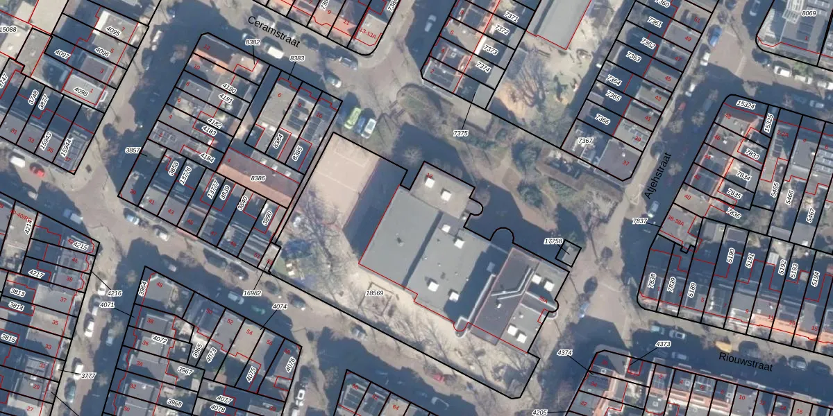 Het perceel waarop Ceramstraat 12 staat heeft een oppervlakte van 2415 m². Dit is een zeer groot perceel. De perceeloppervlakte wordt geregistreerd door het Kadaster. Gedetailleerde informatie over de maten van dit perceel kunt u vinden in het rapport Kadastrale kaart met maatvoering van Ceramstraat 12.