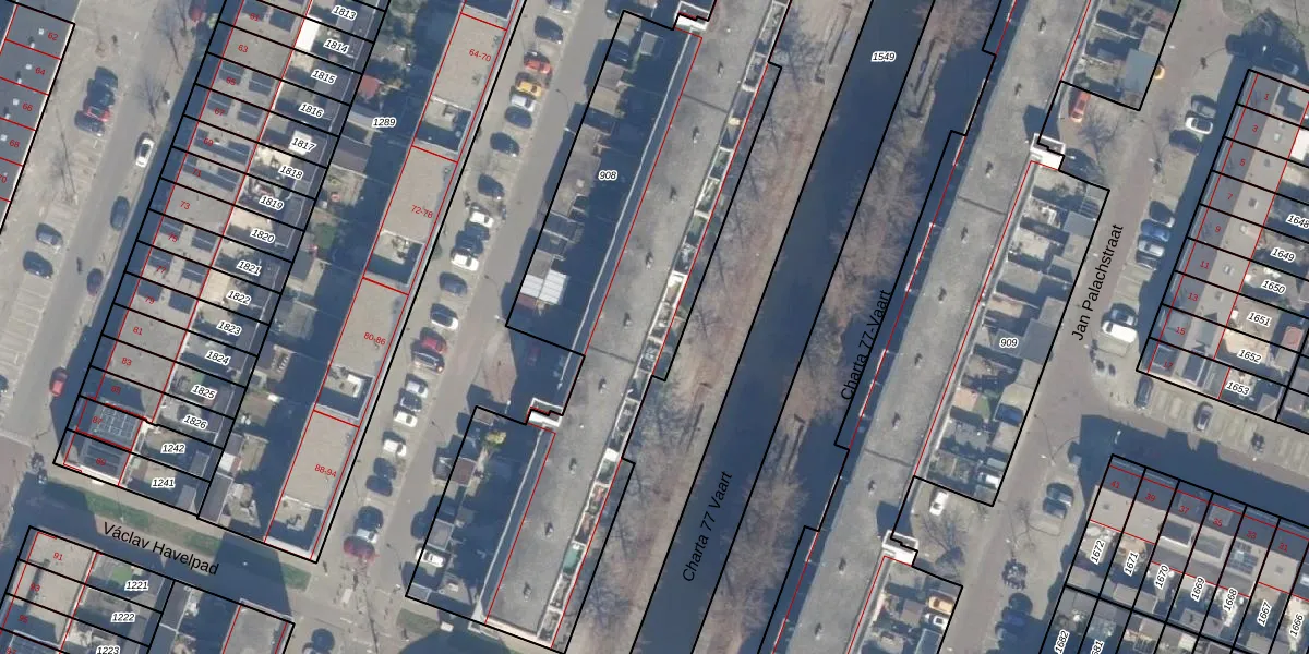Het perceel waarop Charta 77-Vaart 110 staat heeft een oppervlakte van 2968 m². Dit is een zeer groot perceel. De perceeloppervlakte wordt geregistreerd door het Kadaster. Gedetailleerde informatie over de maten van dit perceel kunt u vinden in het rapport Kadastrale kaart met maatvoering van Charta 77-Vaart 110.