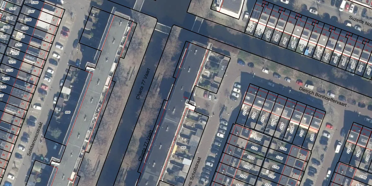 Charta 77-Vaart 45 is gelegen op kadastraal perceel HLM02V900. Deze kadastrale aanduiding is uniek en wordt gebruikt door het Kadaster om eigendomsrechten en andere zakelijke rechten vast te leggen. Het perceel maakt onderdeel uit van de kadastrale gemeente Haarlem.