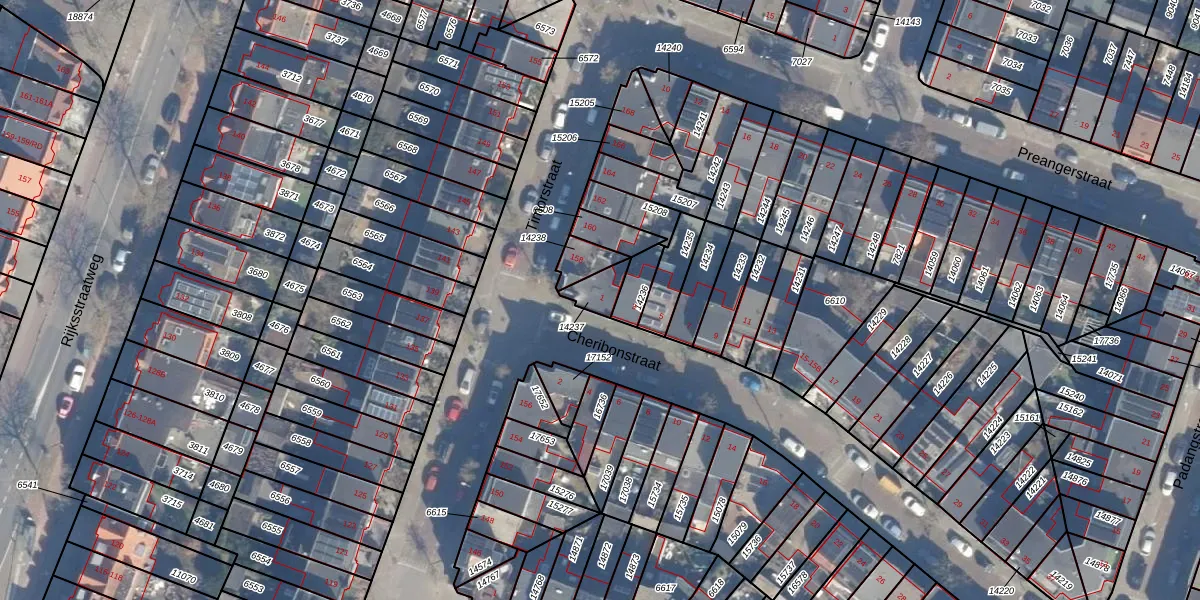 Cheribonstraat 1 is gelegen op kadastraal perceel STN01B14237. Deze kadastrale aanduiding is uniek en wordt gebruikt door het Kadaster om eigendomsrechten en andere zakelijke rechten vast te leggen. Het perceel maakt onderdeel uit van de kadastrale gemeente Schoten.