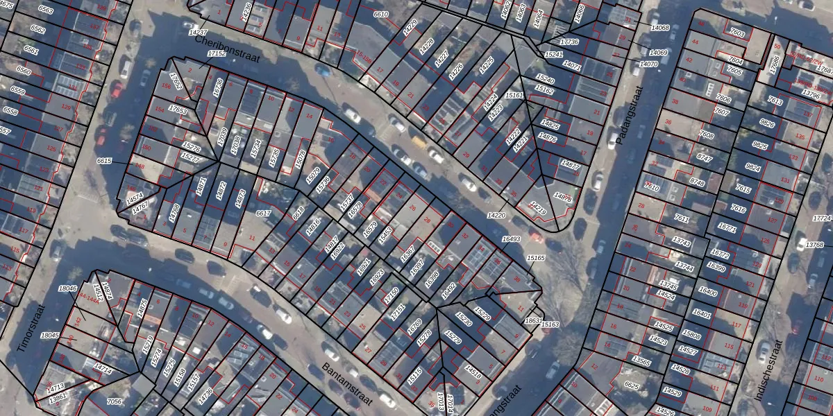 Gebruik de zoekbalk of klik op een perceel voor informatie over de adressen binnen dit perceel.