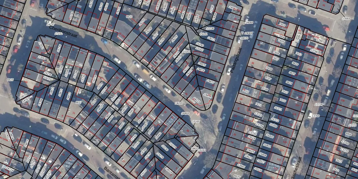 Het perceel waarop Cheribonstraat 33 staat heeft een oppervlakte van 78 m². Dit is een klein perceel. De perceeloppervlakte wordt geregistreerd door het Kadaster. Gedetailleerde informatie over de maten van dit perceel kunt u vinden in het rapport Kadastrale kaart met maatvoering van Cheribonstraat 33.