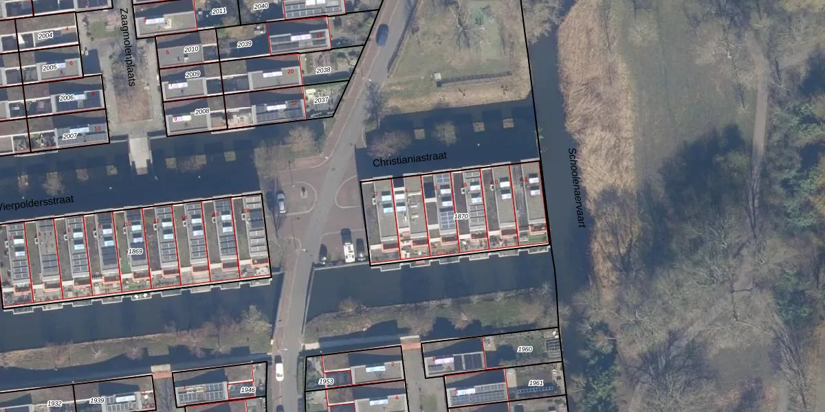 Christianiastraat 4 is gelegen op kadastraal perceel HLM02Q1870. Deze kadastrale aanduiding is uniek en wordt gebruikt door het Kadaster om eigendomsrechten en andere zakelijke rechten vast te leggen. Het perceel maakt onderdeel uit van de kadastrale gemeente Haarlem.