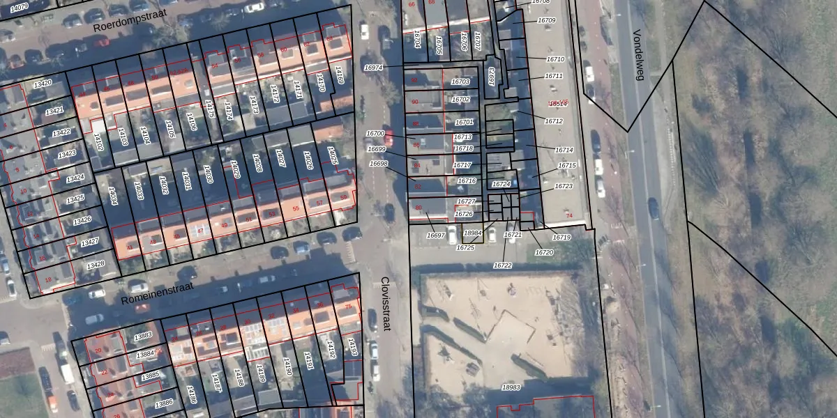 Het perceel waarop Clovisstraat 80 staat heeft een oppervlakte van 113 m². Dit is een middelgroot perceel. De perceeloppervlakte wordt geregistreerd door het Kadaster. Gedetailleerde informatie over de maten van dit perceel kunt u vinden in het rapport Kadastrale kaart met maatvoering van Clovisstraat 80.