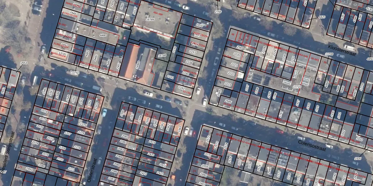 Het perceel waarop Colensostraat 13-B staat heeft een oppervlakte van 96 m². Dit is een klein perceel. De perceeloppervlakte wordt geregistreerd door het Kadaster. Gedetailleerde informatie over de maten van dit perceel kunt u vinden in het rapport Kadastrale kaart met maatvoering van Colensostraat 13-B.
