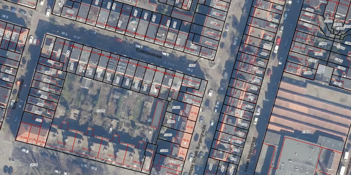 Het perceel waarop Colensostraat 62-RD staat heeft een oppervlakte van 85 m². Dit is een klein perceel. De perceeloppervlakte wordt geregistreerd door het Kadaster. Gedetailleerde informatie over de maten van dit perceel kunt u vinden in het rapport Kadastrale kaart met maatvoering van Colensostraat 62-RD.