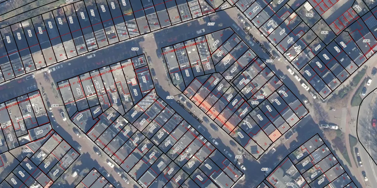 Het perceel waarop Coltermanstraat 1 staat heeft een oppervlakte van 84 m². Dit is een klein perceel. De perceeloppervlakte wordt geregistreerd door het Kadaster. Gedetailleerde informatie over de maten van dit perceel kunt u vinden in het rapport Kadastrale kaart met maatvoering van Coltermanstraat 1.