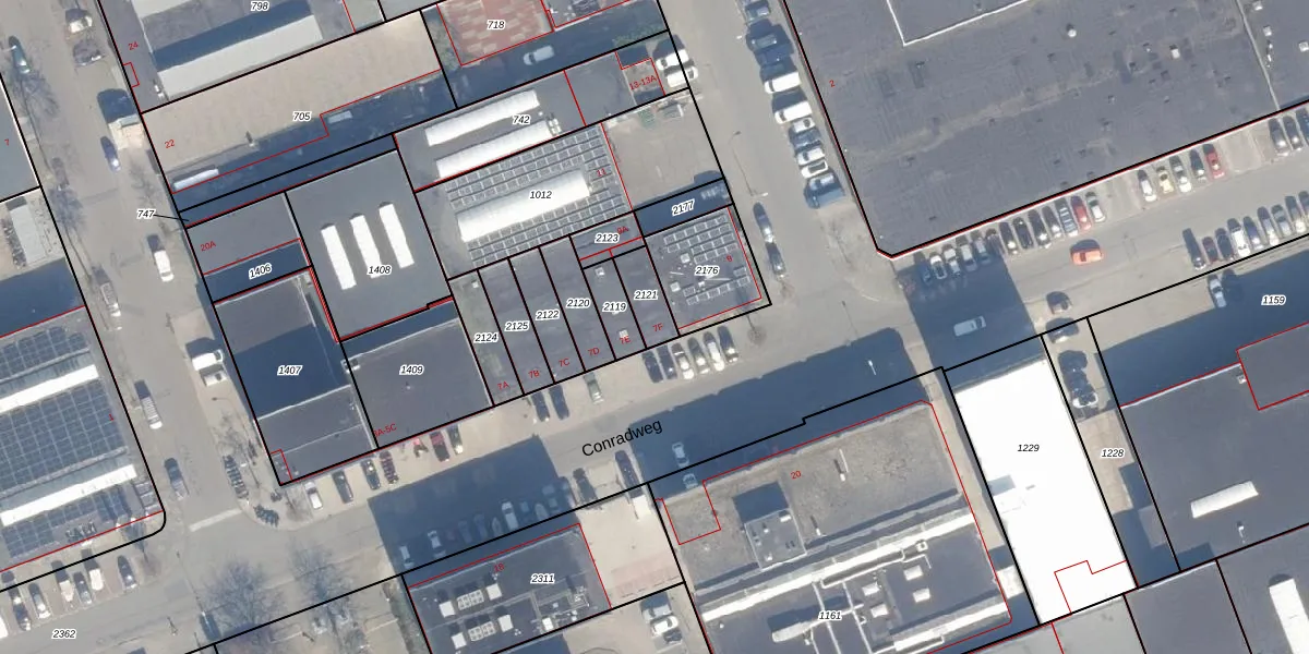 Conradweg 7-F is gelegen op kadastraal perceel HLM02N2121. Deze kadastrale aanduiding is uniek en wordt gebruikt door het Kadaster om eigendomsrechten en andere zakelijke rechten vast te leggen. Het perceel maakt onderdeel uit van de kadastrale gemeente Haarlem.