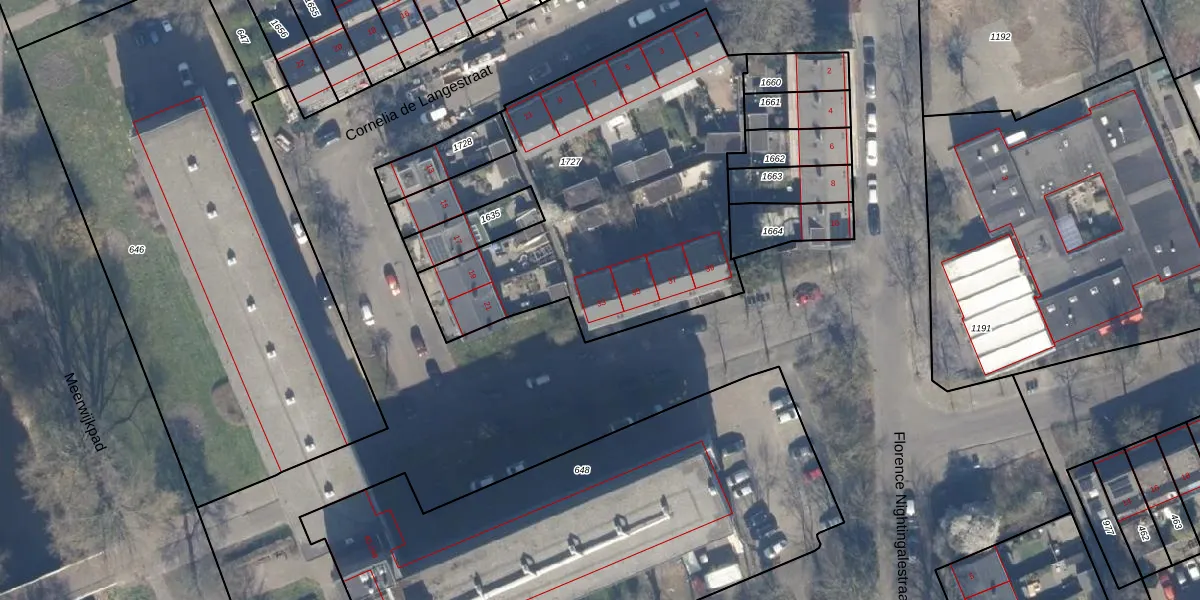 Het perceel waarop Cornelia de Langestraat 33 staat heeft een oppervlakte van 1912 m². Dit is een zeer groot perceel. De perceeloppervlakte wordt geregistreerd door het Kadaster. Gedetailleerde informatie over de maten van dit perceel kunt u vinden in het rapport Kadastrale kaart met maatvoering van Cornelia de Langestraat 33.