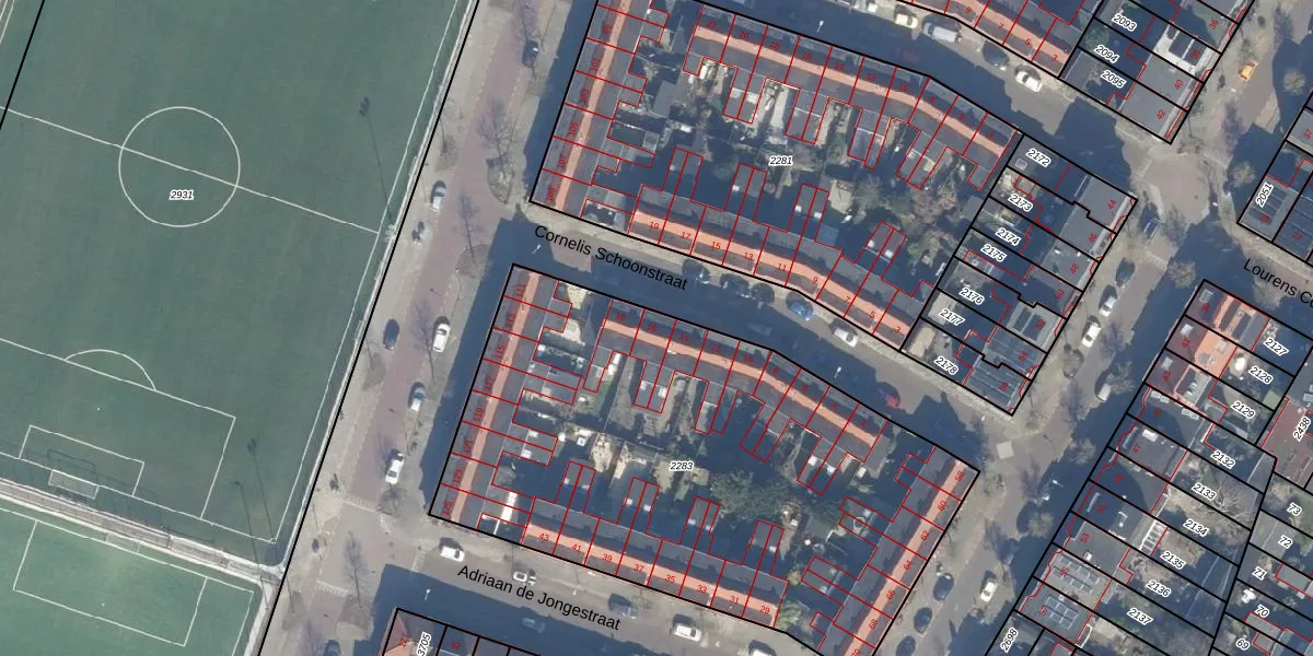 Het perceel waarop Cornelis Schoonstraat 16 staat heeft een oppervlakte van 2890 m². Dit is een zeer groot perceel. De perceeloppervlakte wordt geregistreerd door het Kadaster. Gedetailleerde informatie over de maten van dit perceel kunt u vinden in het rapport Kadastrale kaart met maatvoering van Cornelis Schoonstraat 16.