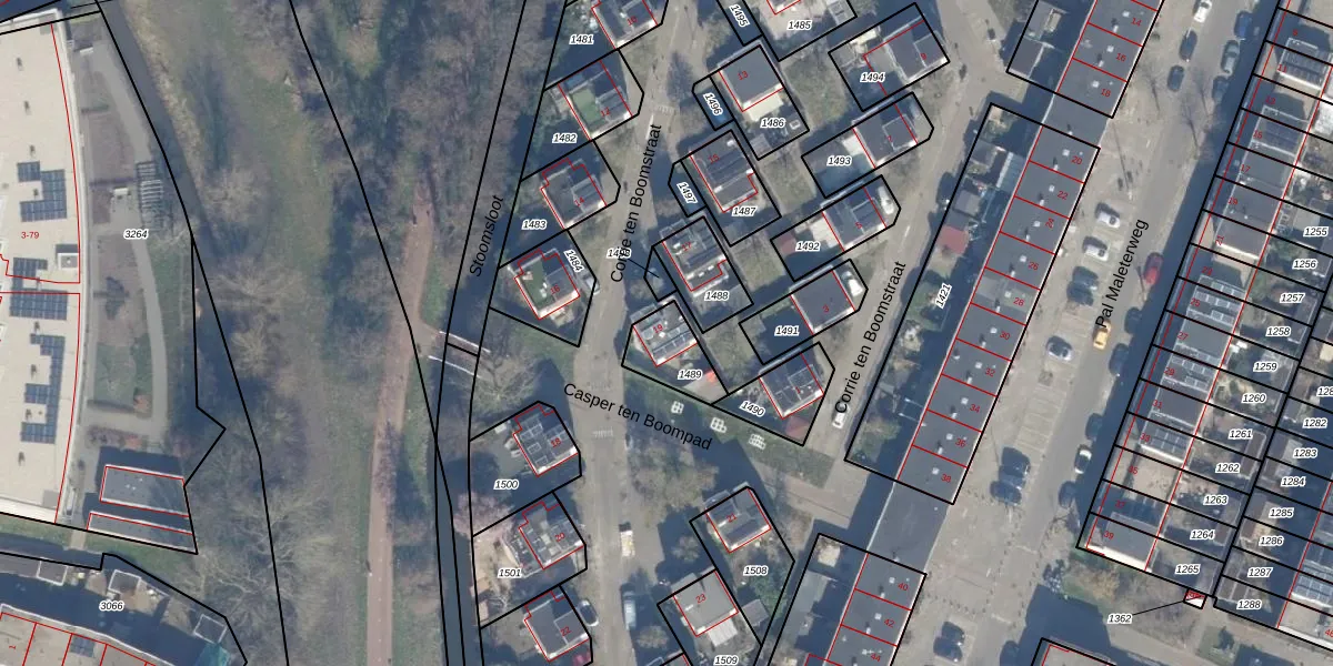 Corrie ten Boomstraat 19 is gelegen op kadastraal perceel HLM02V1489. Deze kadastrale aanduiding is uniek en wordt gebruikt door het Kadaster om eigendomsrechten en andere zakelijke rechten vast te leggen. Het perceel maakt onderdeel uit van de kadastrale gemeente Haarlem.
