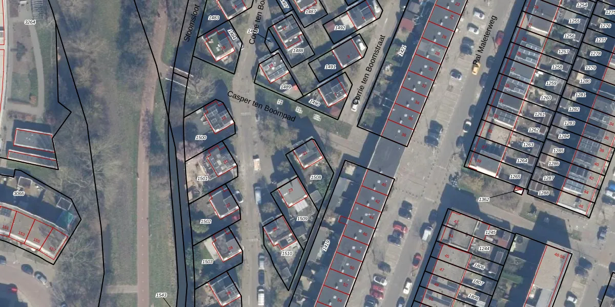 Corrie ten Boomstraat 21 is gelegen op kadastraal perceel HLM02V1508. Deze kadastrale aanduiding is uniek en wordt gebruikt door het Kadaster om eigendomsrechten en andere zakelijke rechten vast te leggen. Het perceel maakt onderdeel uit van de kadastrale gemeente Haarlem.