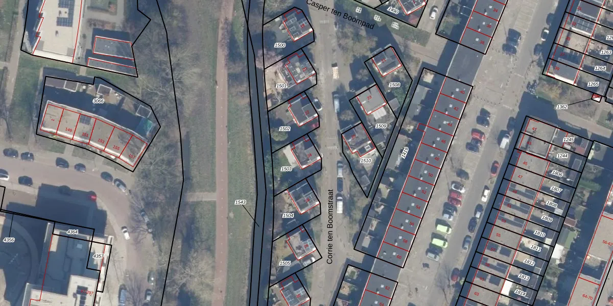 Het perceel waarop Corrie ten Boomstraat 24 staat heeft een oppervlakte van 200 m². Dit is een middelgroot perceel. De perceeloppervlakte wordt geregistreerd door het Kadaster. Gedetailleerde informatie over de maten van dit perceel kunt u vinden in het rapport Kadastrale kaart met maatvoering van Corrie ten Boomstraat 24.