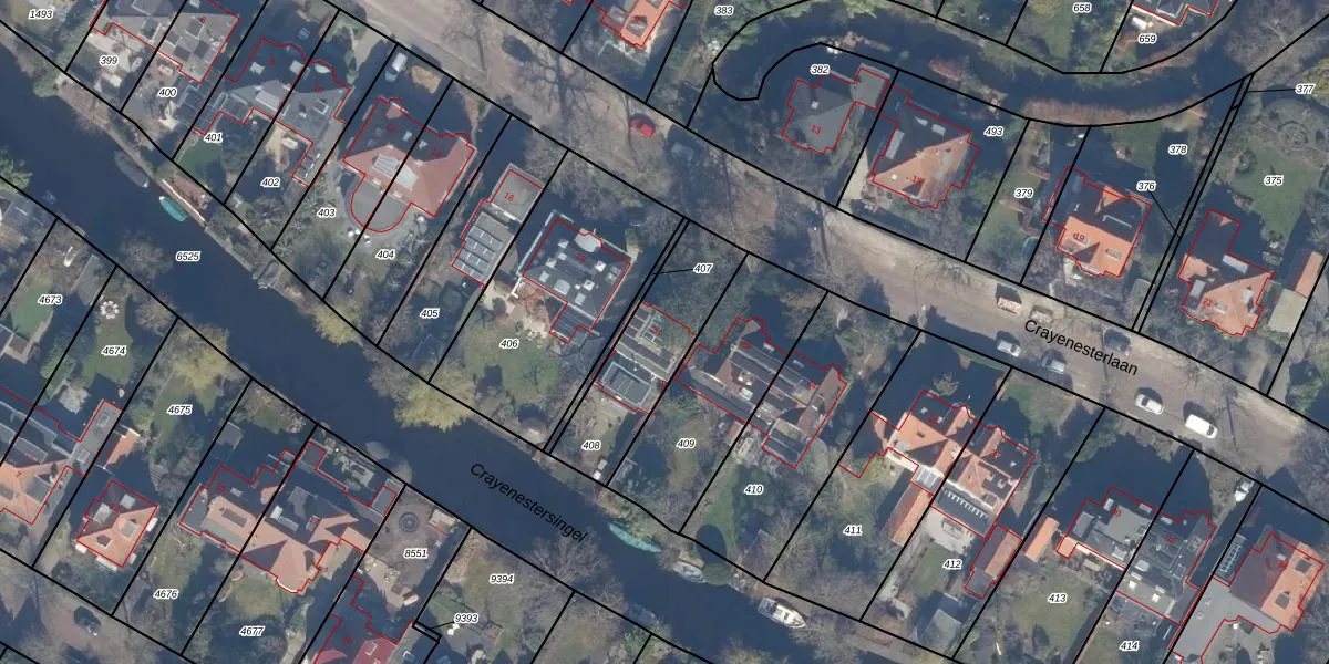Het perceel waarop Crayenesterlaan 20 staat heeft een oppervlakte van 410 m². Dit is een groot perceel. De perceeloppervlakte wordt geregistreerd door het Kadaster. Gedetailleerde informatie over de maten van dit perceel kunt u vinden in het rapport Kadastrale kaart met maatvoering van Crayenesterlaan 20.