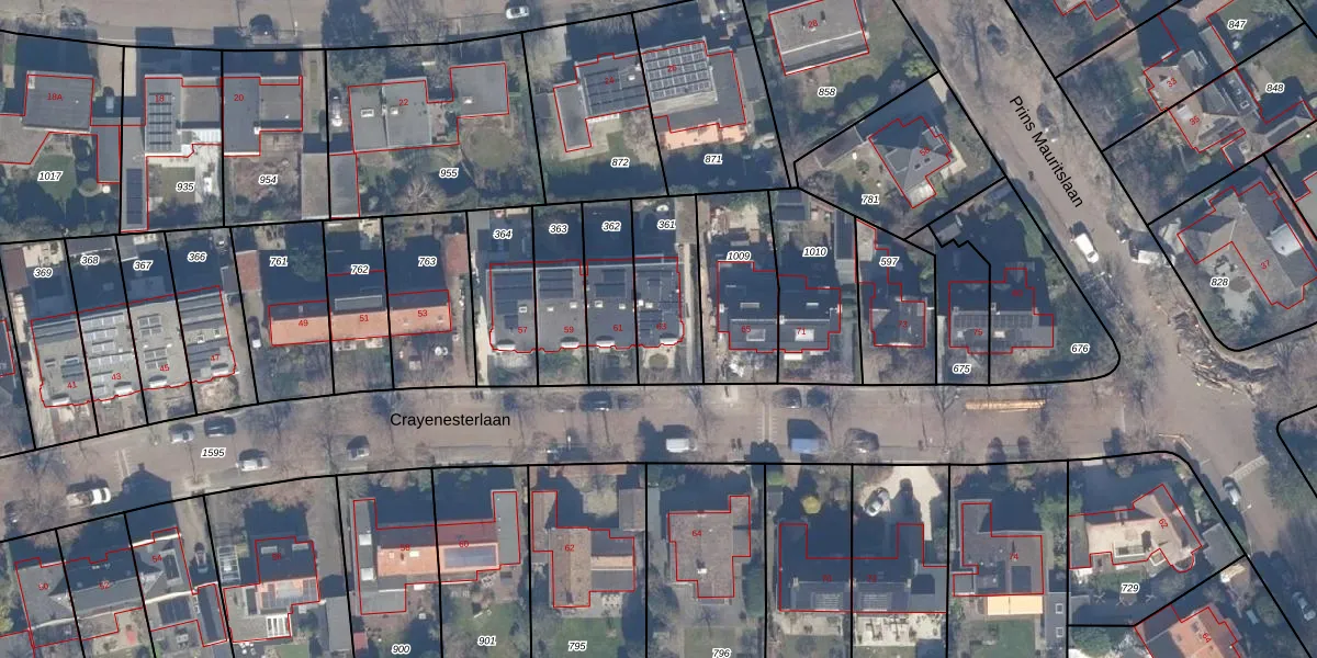 Gebruik de zoekbalk of klik op een perceel voor informatie over de adressen binnen dit perceel.