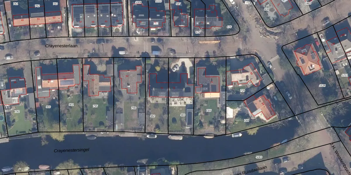 Crayenesterlaan 72 is gelegen op kadastraal perceel HLM02R983. Deze kadastrale aanduiding is uniek en wordt gebruikt door het Kadaster om eigendomsrechten en andere zakelijke rechten vast te leggen. Het perceel maakt onderdeel uit van de kadastrale gemeente Haarlem.