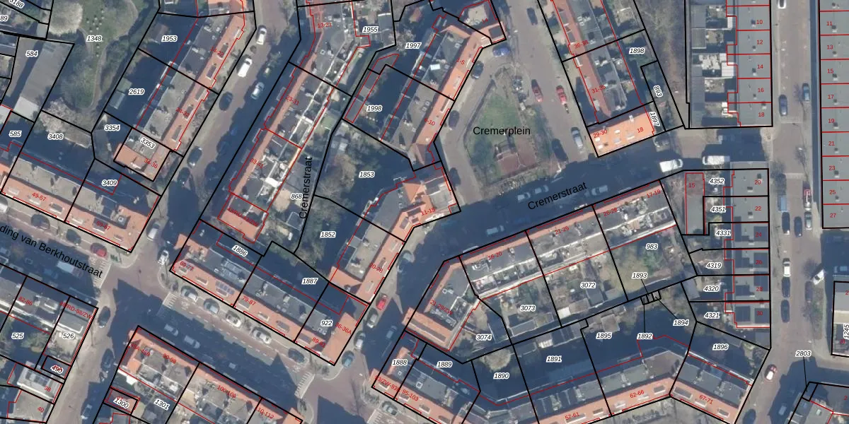Het perceel waarop Cremerplein 13 staat heeft een oppervlakte van 537 m². Dit is een groot perceel. De perceeloppervlakte wordt geregistreerd door het Kadaster. Gedetailleerde informatie over de maten van dit perceel kunt u vinden in het rapport Kadastrale kaart met maatvoering van Cremerplein 13.