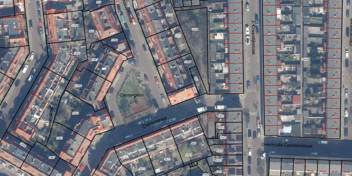 Het perceel waarop Cremerplein 31 staat heeft een oppervlakte van 317 m². Dit is een groot perceel. De perceeloppervlakte wordt geregistreerd door het Kadaster. Gedetailleerde informatie over de maten van dit perceel kunt u vinden in het rapport Kadastrale kaart met maatvoering van Cremerplein 31.