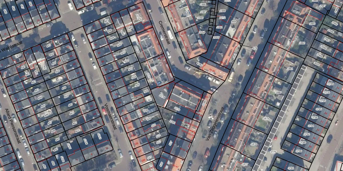 Gebruik de zoekbalk of klik op een perceel voor informatie over de adressen binnen dit perceel.