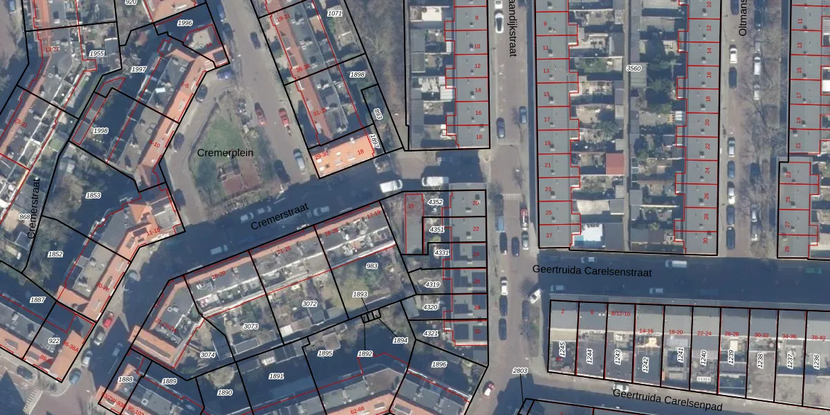 Het perceel waarop Cremerstraat 15 staat heeft een oppervlakte van 215 m². Dit is een middelgroot perceel. De perceeloppervlakte wordt geregistreerd door het Kadaster. Gedetailleerde informatie over de maten van dit perceel kunt u vinden in het rapport Kadastrale kaart met maatvoering van Cremerstraat 15.