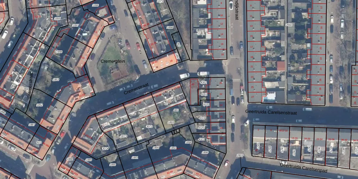Het perceel waarop Cremerstraat 17 staat heeft een oppervlakte van 413 m². Dit is een groot perceel. De perceeloppervlakte wordt geregistreerd door het Kadaster. Gedetailleerde informatie over de maten van dit perceel kunt u vinden in het rapport Kadastrale kaart met maatvoering van Cremerstraat 17.