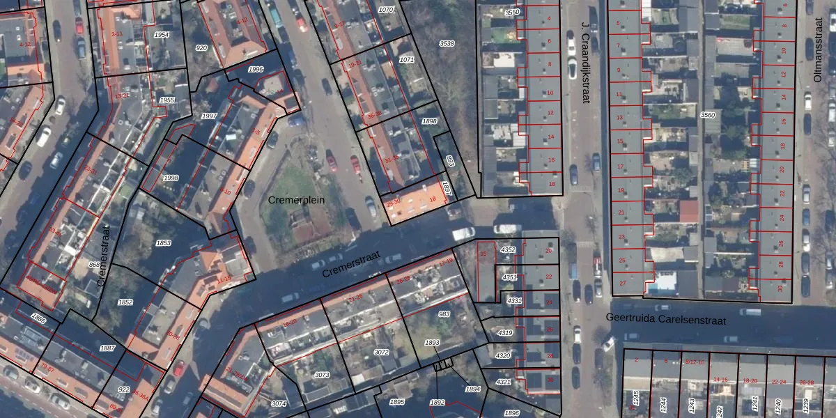 Cremerstraat 18 is gelegen op kadastraal perceel HLM02P1897. Deze kadastrale aanduiding is uniek en wordt gebruikt door het Kadaster om eigendomsrechten en andere zakelijke rechten vast te leggen. Het perceel maakt onderdeel uit van de kadastrale gemeente Haarlem.