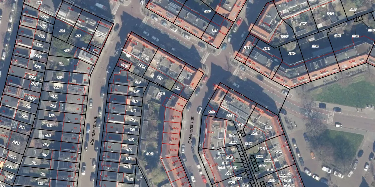 Het perceel waarop Cremerstraat 38 staat heeft een oppervlakte van 185 m². Dit is een middelgroot perceel. De perceeloppervlakte wordt geregistreerd door het Kadaster. Gedetailleerde informatie over de maten van dit perceel kunt u vinden in het rapport Kadastrale kaart met maatvoering van Cremerstraat 38.