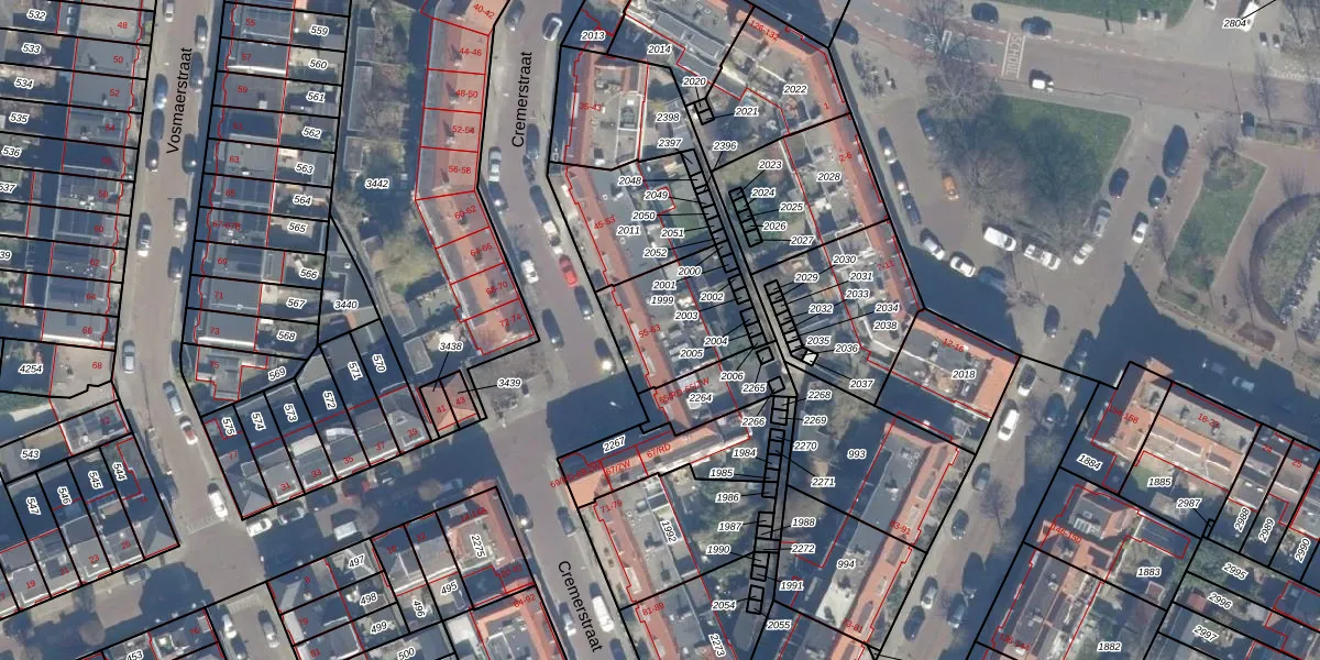 Het perceel waarop Cremerstraat 59 staat heeft een oppervlakte van 335 m². Dit is een groot perceel. De perceeloppervlakte wordt geregistreerd door het Kadaster. Gedetailleerde informatie over de maten van dit perceel kunt u vinden in het rapport Kadastrale kaart met maatvoering van Cremerstraat 59.
