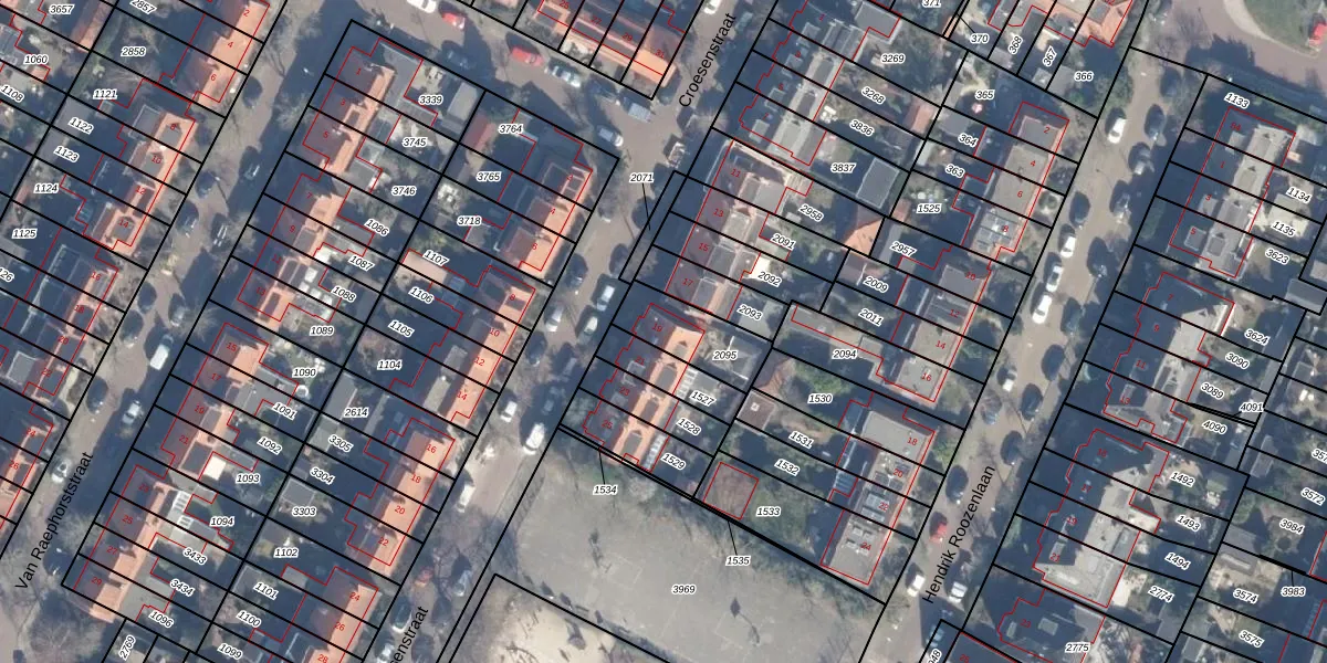 Het perceel waarop Croesenstraat 19 staat heeft een oppervlakte van 186 m². Dit is een middelgroot perceel. De perceeloppervlakte wordt geregistreerd door het Kadaster. Gedetailleerde informatie over de maten van dit perceel kunt u vinden in het rapport Kadastrale kaart met maatvoering van Croesenstraat 19.