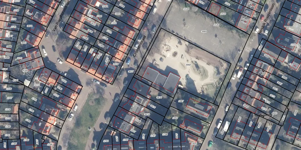 Het perceel waarop Croesenstraat 51 staat heeft een oppervlakte van 1775 m². Dit is een zeer groot perceel. De perceeloppervlakte wordt geregistreerd door het Kadaster. Gedetailleerde informatie over de maten van dit perceel kunt u vinden in het rapport Kadastrale kaart met maatvoering van Croesenstraat 51.