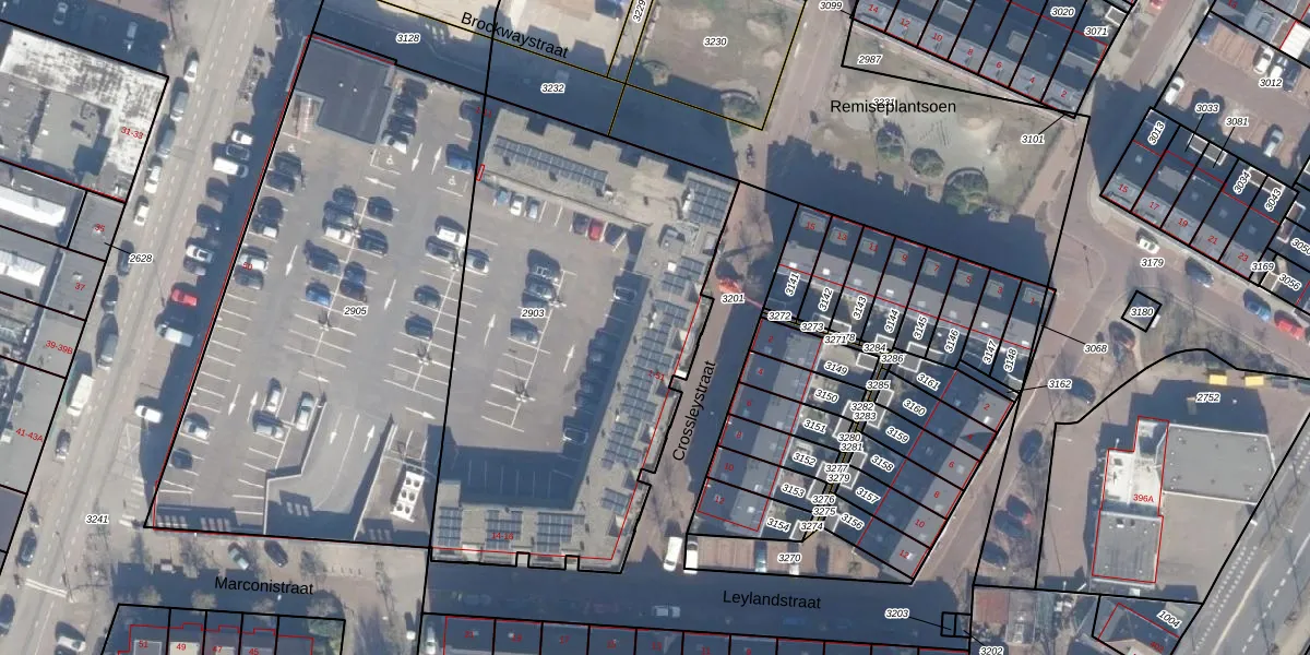 Het perceel waarop Crossleystraat 33 staat heeft een oppervlakte van 2345 m². Dit is een zeer groot perceel. De perceeloppervlakte wordt geregistreerd door het Kadaster. Gedetailleerde informatie over de maten van dit perceel kunt u vinden in het rapport Kadastrale kaart met maatvoering van Crossleystraat 33.