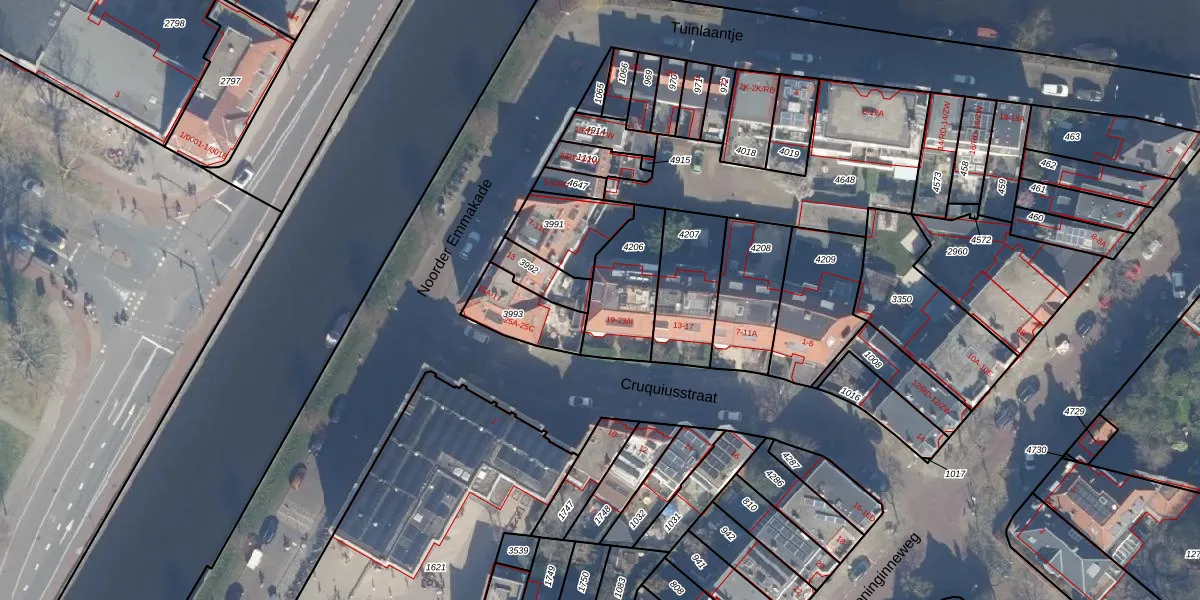 Het perceel waarop het adres ligt is HLM01-I-4206. De afkorting 'HLM01' staat voor kadastrale gemeente Haarlem. Het perceel is kleiner dan gemiddeld in Haarlem. Het perceel is 230 m² groot, terwijl het gemiddelde ligt op 328,17 m². Het kleinste perceel in de kadastrale gemeente is 0 m² groot. De grootste perceeloppervlakte is 13,9 ha. Op het perceel zijn 5 adressen aanwezig. De laatste wijziging in het de Basisregistratie Kadaster (BRK) was op 30-10-2001.