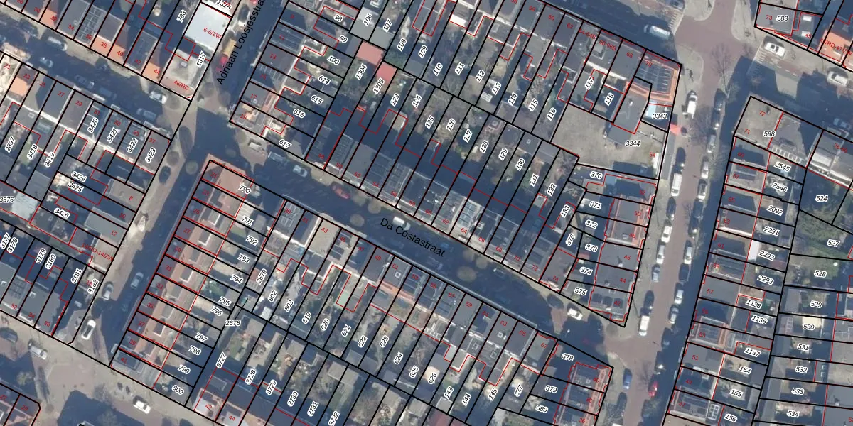 Het perceel waarop Da Costastraat 60 staat heeft een oppervlakte van 139 m². Dit is een middelgroot perceel. De perceeloppervlakte wordt geregistreerd door het Kadaster. Gedetailleerde informatie over de maten van dit perceel kunt u vinden in het rapport Kadastrale kaart met maatvoering van Da Costastraat 60.