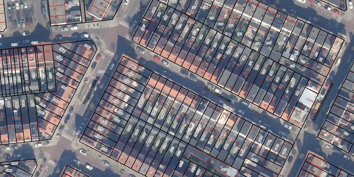 Het perceel waarop Da Costastraat 7 staat heeft een oppervlakte van 122 m². Dit is een middelgroot perceel. De perceeloppervlakte wordt geregistreerd door het Kadaster. Gedetailleerde informatie over de maten van dit perceel kunt u vinden in het rapport Kadastrale kaart met maatvoering van Da Costastraat 7.
