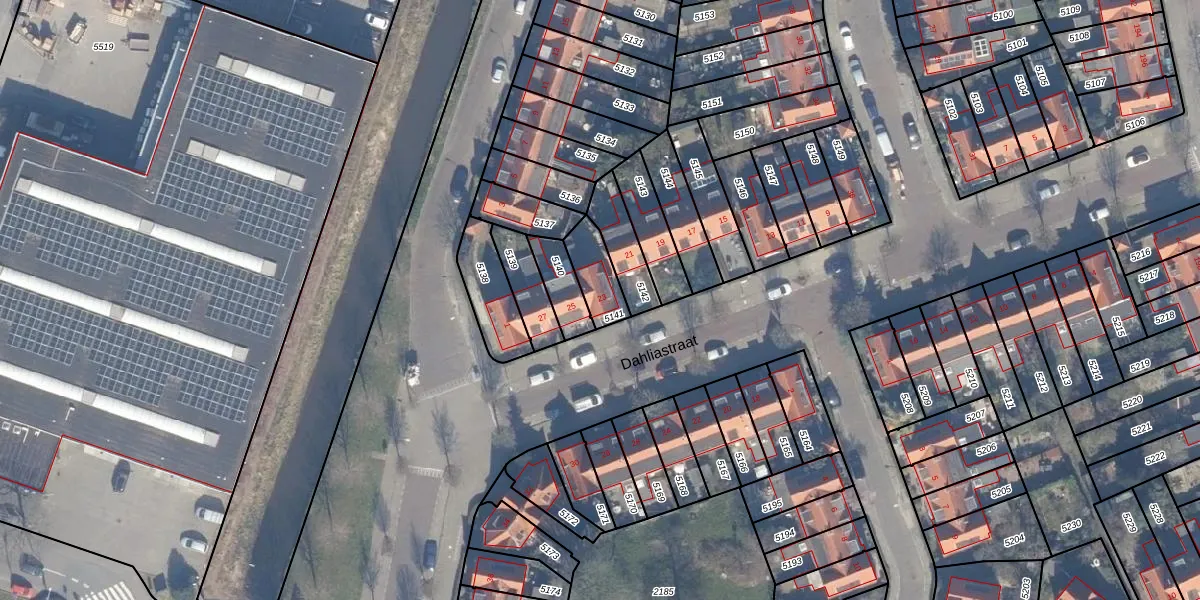 Dahliastraat 23 is gelegen op kadastraal perceel HLM01I5141. Deze kadastrale aanduiding is uniek en wordt gebruikt door het Kadaster om eigendomsrechten en andere zakelijke rechten vast te leggen. Het perceel maakt onderdeel uit van de kadastrale gemeente Haarlem.