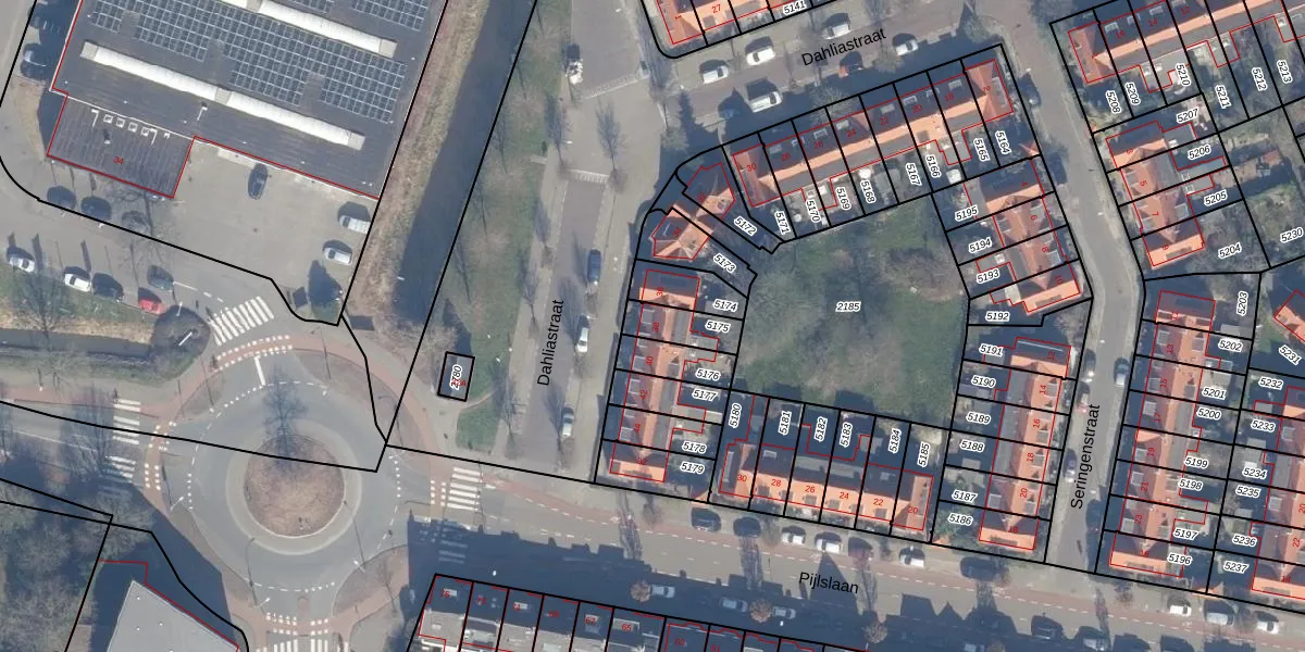 Het perceel waarop Dahliastraat 38 staat heeft een oppervlakte van 99 m². Dit is een klein perceel. De perceeloppervlakte wordt geregistreerd door het Kadaster. Gedetailleerde informatie over de maten van dit perceel kunt u vinden in het rapport Kadastrale kaart met maatvoering van Dahliastraat 38.