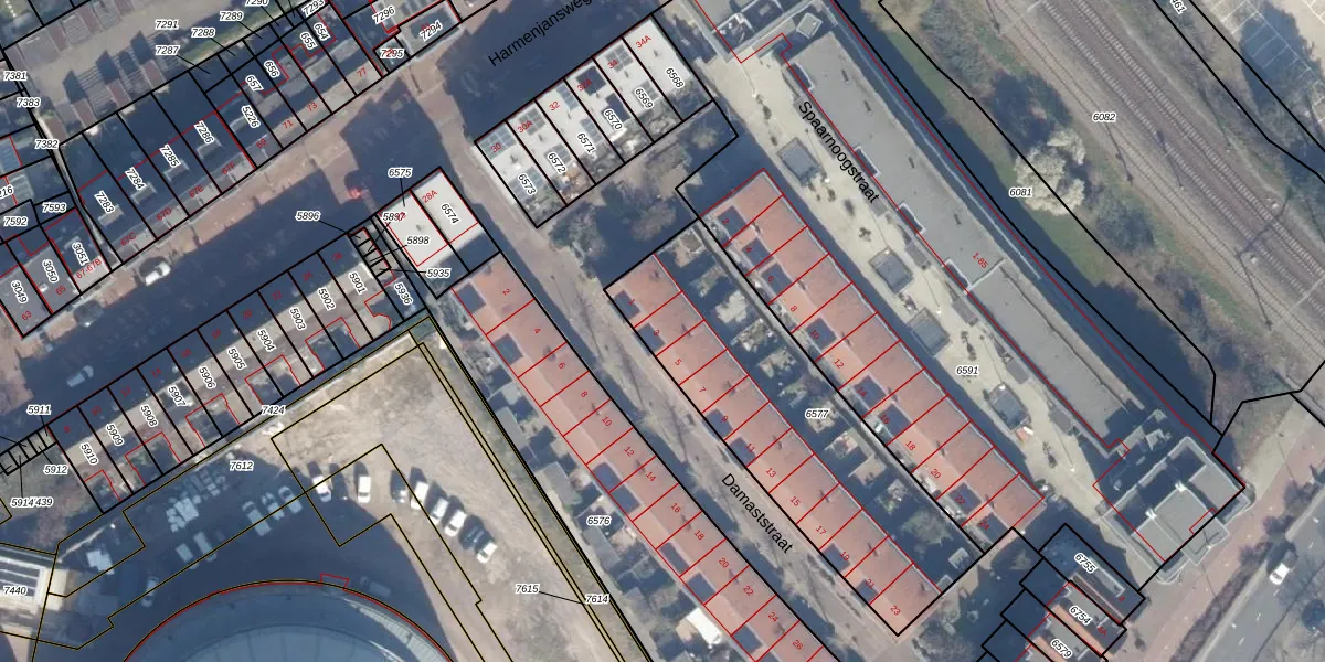 Damaststraat 3 is gelegen op kadastraal perceel HLM01E6577. Deze kadastrale aanduiding is uniek en wordt gebruikt door het Kadaster om eigendomsrechten en andere zakelijke rechten vast te leggen. Het perceel maakt onderdeel uit van de kadastrale gemeente Haarlem.