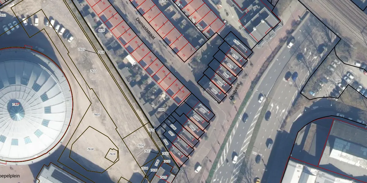 Het perceel waarop Damaststraat 34 staat heeft een oppervlakte van 2000 m². Dit is een zeer groot perceel. De perceeloppervlakte wordt geregistreerd door het Kadaster. Gedetailleerde informatie over de maten van dit perceel kunt u vinden in het rapport Kadastrale kaart met maatvoering van Damaststraat 34.