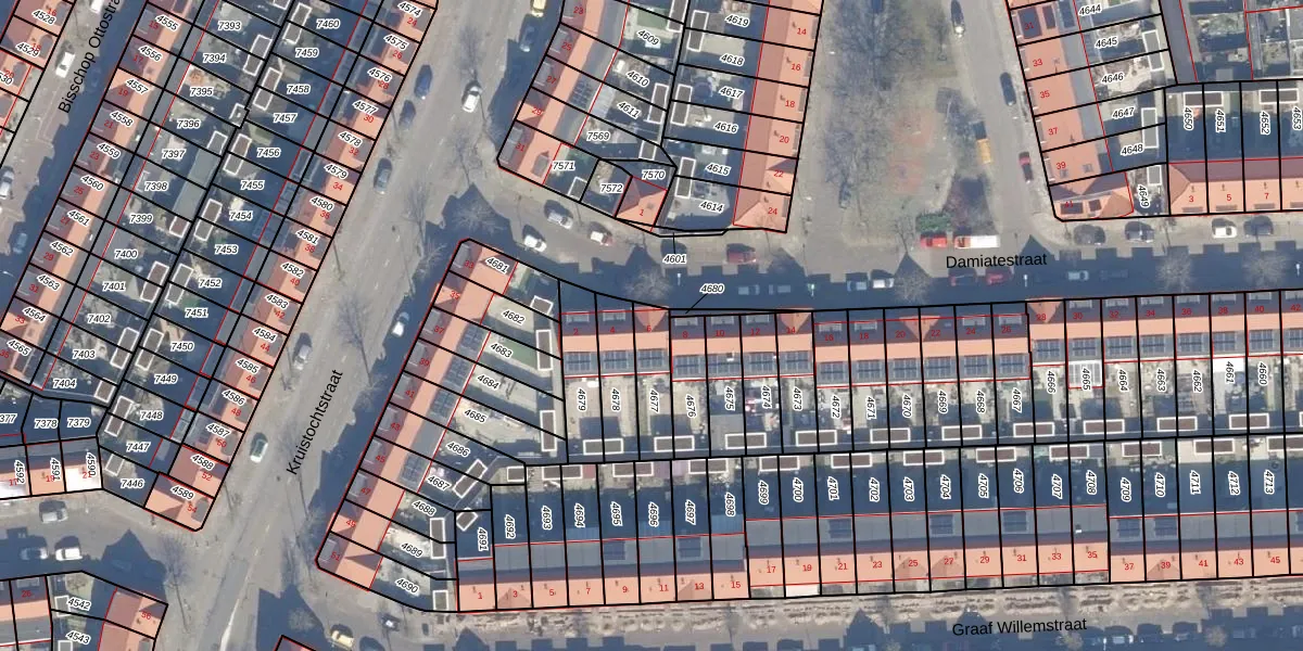 Gebruik de zoekbalk of klik op een perceel voor informatie over de adressen binnen dit perceel.