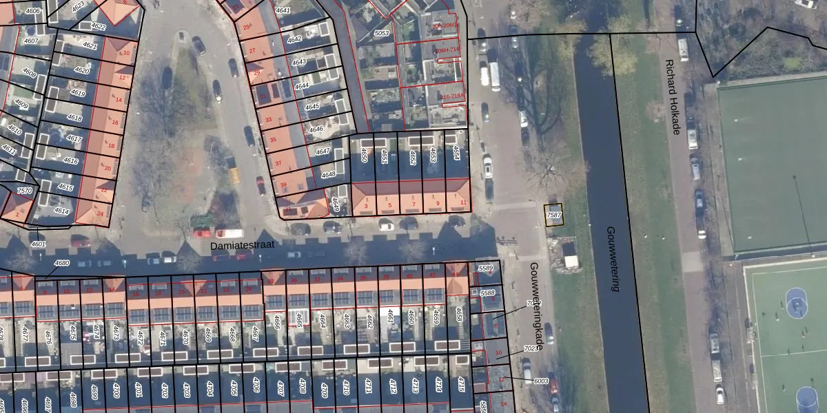 Damiatestraat 7 is gelegen op kadastraal perceel HLM01E4652. Deze kadastrale aanduiding is uniek en wordt gebruikt door het Kadaster om eigendomsrechten en andere zakelijke rechten vast te leggen. Het perceel maakt onderdeel uit van de kadastrale gemeente Haarlem.