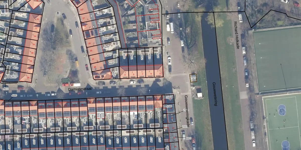 Damiatestraat 9 is gelegen op kadastraal perceel HLM01E4653. Deze kadastrale aanduiding is uniek en wordt gebruikt door het Kadaster om eigendomsrechten en andere zakelijke rechten vast te leggen. Het perceel maakt onderdeel uit van de kadastrale gemeente Haarlem.