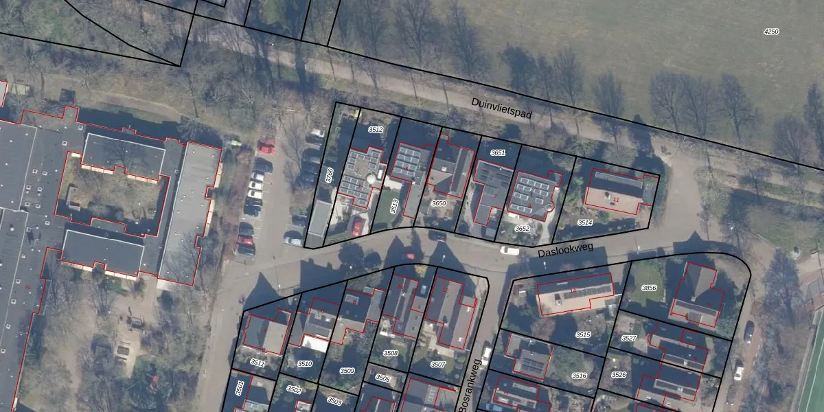 Daslookweg 3 is gelegen op kadastraal perceel HLM02T3513. Deze kadastrale aanduiding is uniek en wordt gebruikt door het Kadaster om eigendomsrechten en andere zakelijke rechten vast te leggen. Het perceel maakt onderdeel uit van de kadastrale gemeente Haarlem.
