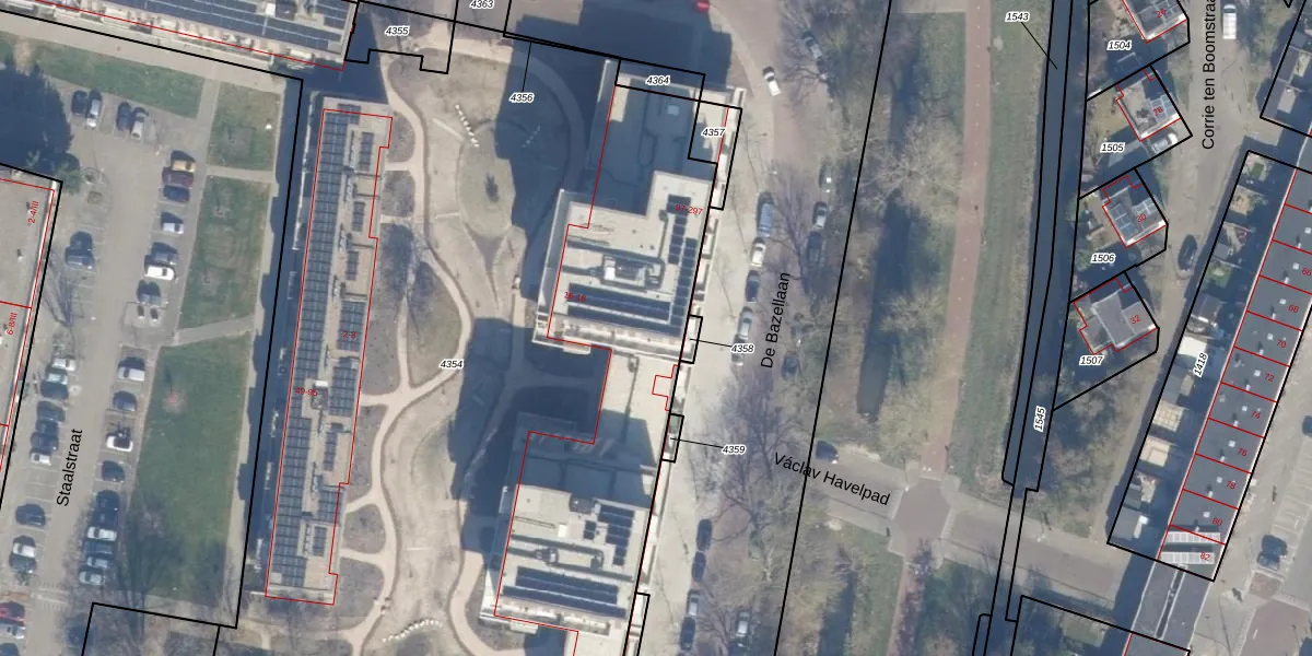 De Bazellaan 191 is gelegen op kadastraal perceel HLM02P4354. Deze kadastrale aanduiding is uniek en wordt gebruikt door het Kadaster om eigendomsrechten en andere zakelijke rechten vast te leggen. Het perceel maakt onderdeel uit van de kadastrale gemeente Haarlem.