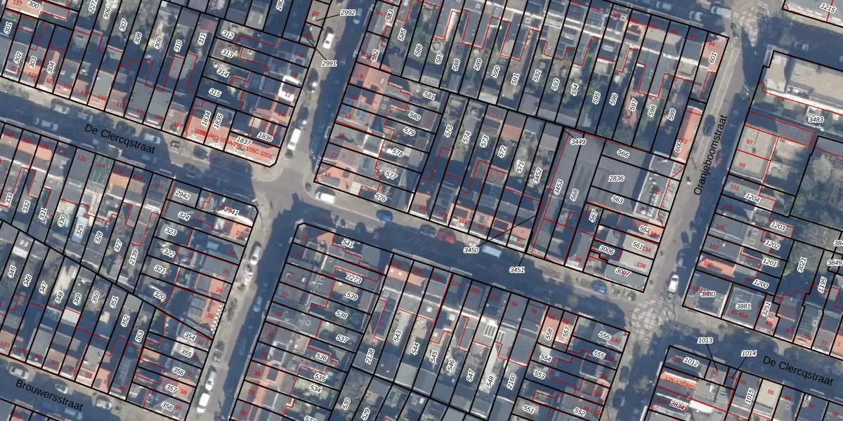 Gebruik de zoekbalk of klik op een perceel voor informatie over de adressen binnen dit perceel.